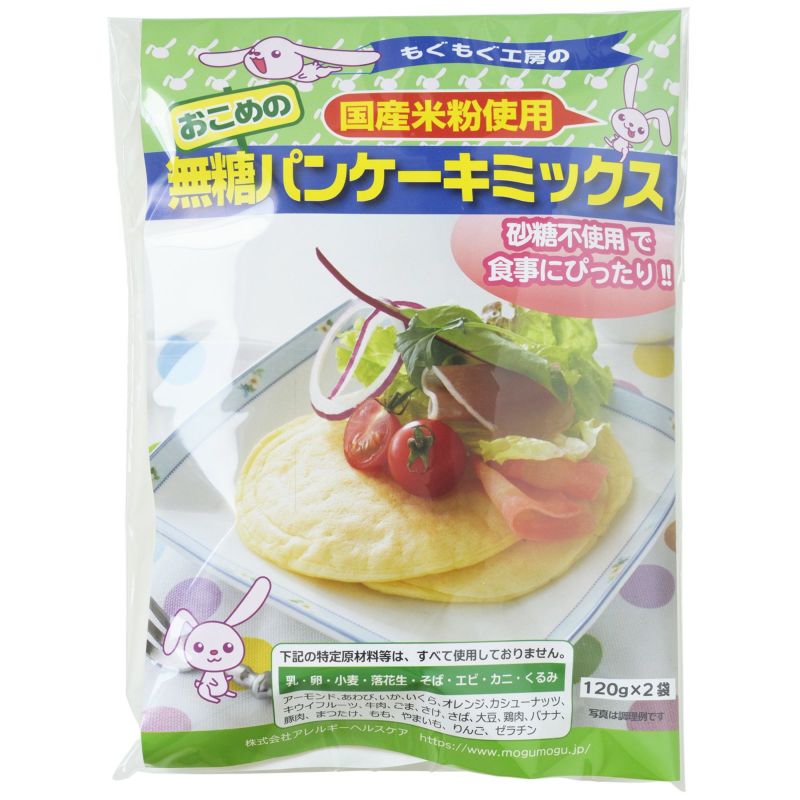 国産の米粉で作った、砂糖不使用のミックス粉です。パンケーキ、ホットドッグなど、様々なお料理にご利用いただけます。