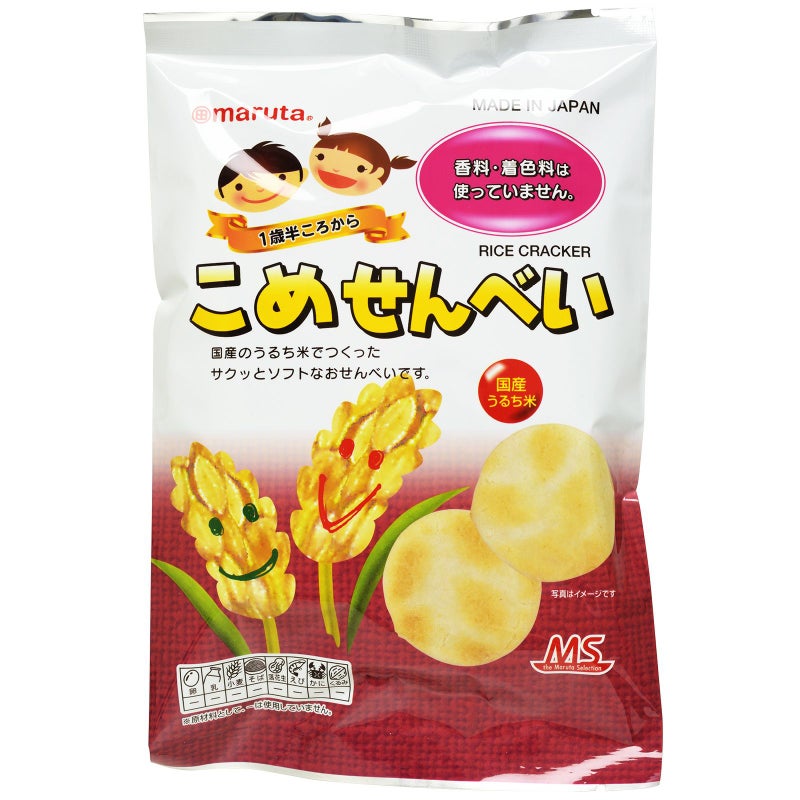 国産のうるち米でつくった、サクッとソフトなおせんべいです。 携帯に便利な個包装です。 【1歳半ころから】